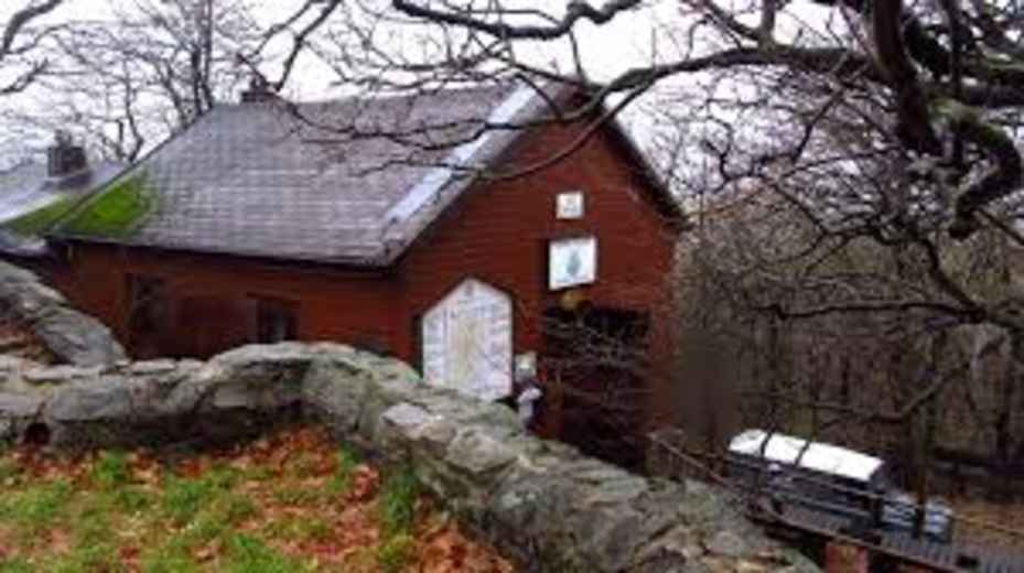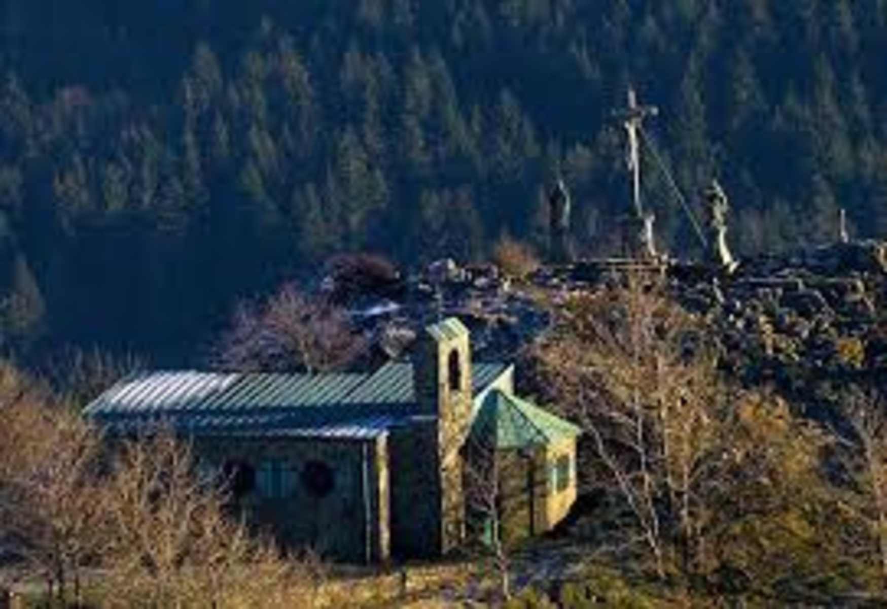 gruppe und unterhalb davon eine kleine Wallfahrtskapelle.