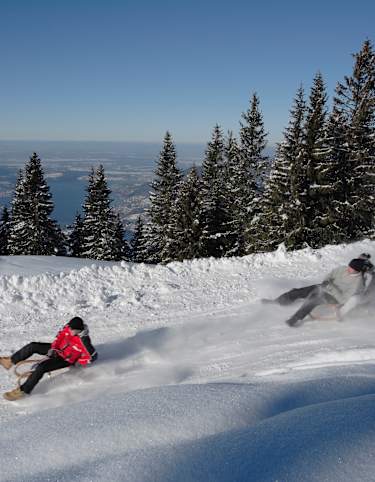 Diese bayerische Wintertour in Garmisch-Partenkirchen ist ohne mühsamen Aufstieg und daher für jedermann, auch ohne übermäßig viel Kondition, geeignet. Mit der Eckbauerbahn wird man nämlich auf 1.230 m hinaufbefördert und kommt dann in den Genuss von ausgiebigem Rodelspaß.