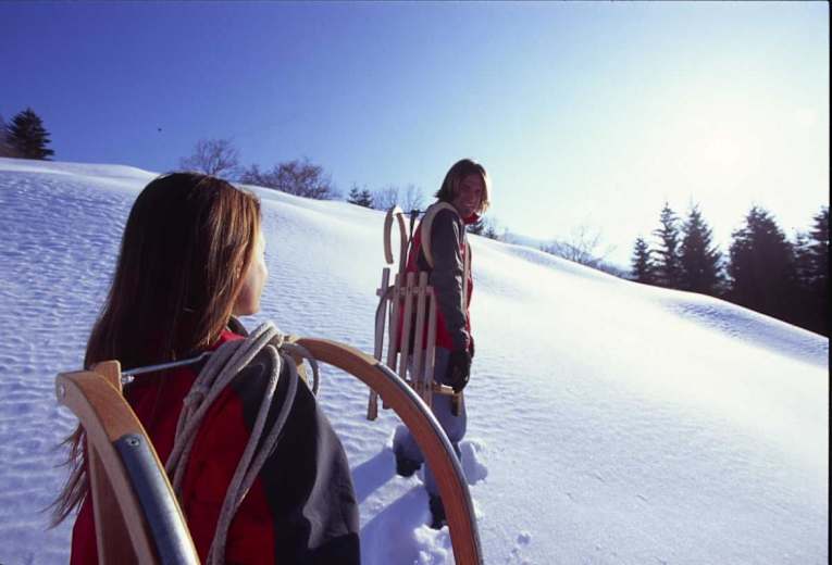 Die Piste wird gleichzeitig von Skifahrern sowie auch von Rodlern genutzt, deshalb sollte man bei er Abfahrt immer vorsichtig sein.
