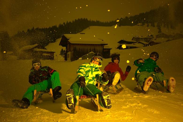 Rodeln in der Silvretta auf Vorarlbergs längster beleuchteter Nachtrodelbahn: Die 5,5 km lange Strecke von der Garfrescha Bahn Bergstation im Montafon hinunter ins Tal ist ein Naturerlebnis der besonderen Art.
