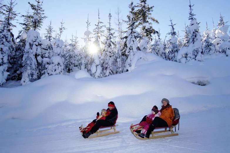 Wer sich den Aufstieg sparen möchte, kann sich mit dem Skidoo Rodeltaxi hinaufbringen lassen. Eine Voranmeldung ist zu empfehlen.