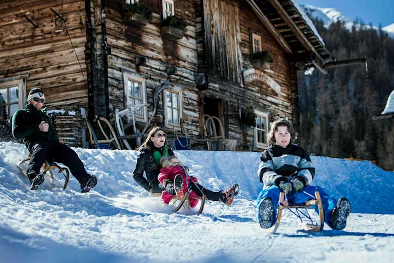 Tolle Naturrodelbahn in den südlichen Ausläufern der Zillertaler Alpen: Die 4,5 km lange Rodelbahn Tristenbach in Weißenbach in Südtirol führt an drei Almen vorbei und ist wegen ihrer Höhenlage schneesicher.