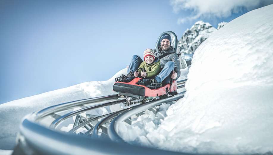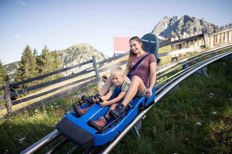 Der Alpin Bob ist eine besondere Attraktion im Familienskigebiet Meran 2000 in den Sarntaler Alpen Südtirols.