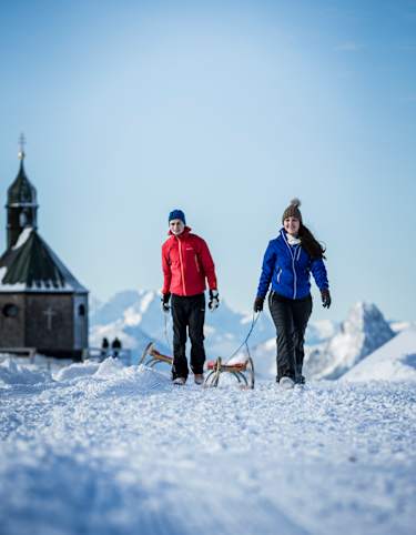 Direkt bei den Ausgangspunkte besteht die Möglichkeit, sich Rodeln auszuborgen.