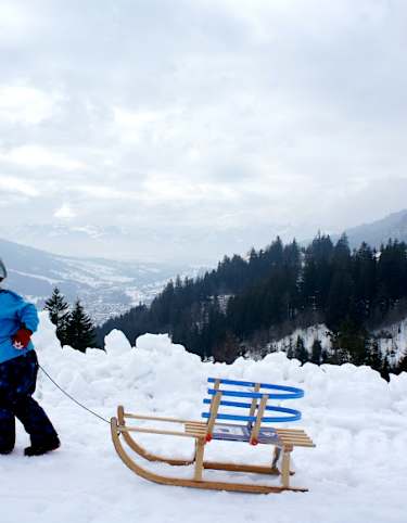 Nach einem leichten Winterspaziergang auf die Nisslalm kann man die 5 Kilometer lange Rodelbahn ins Tal mit der ganzen Familie genießen.