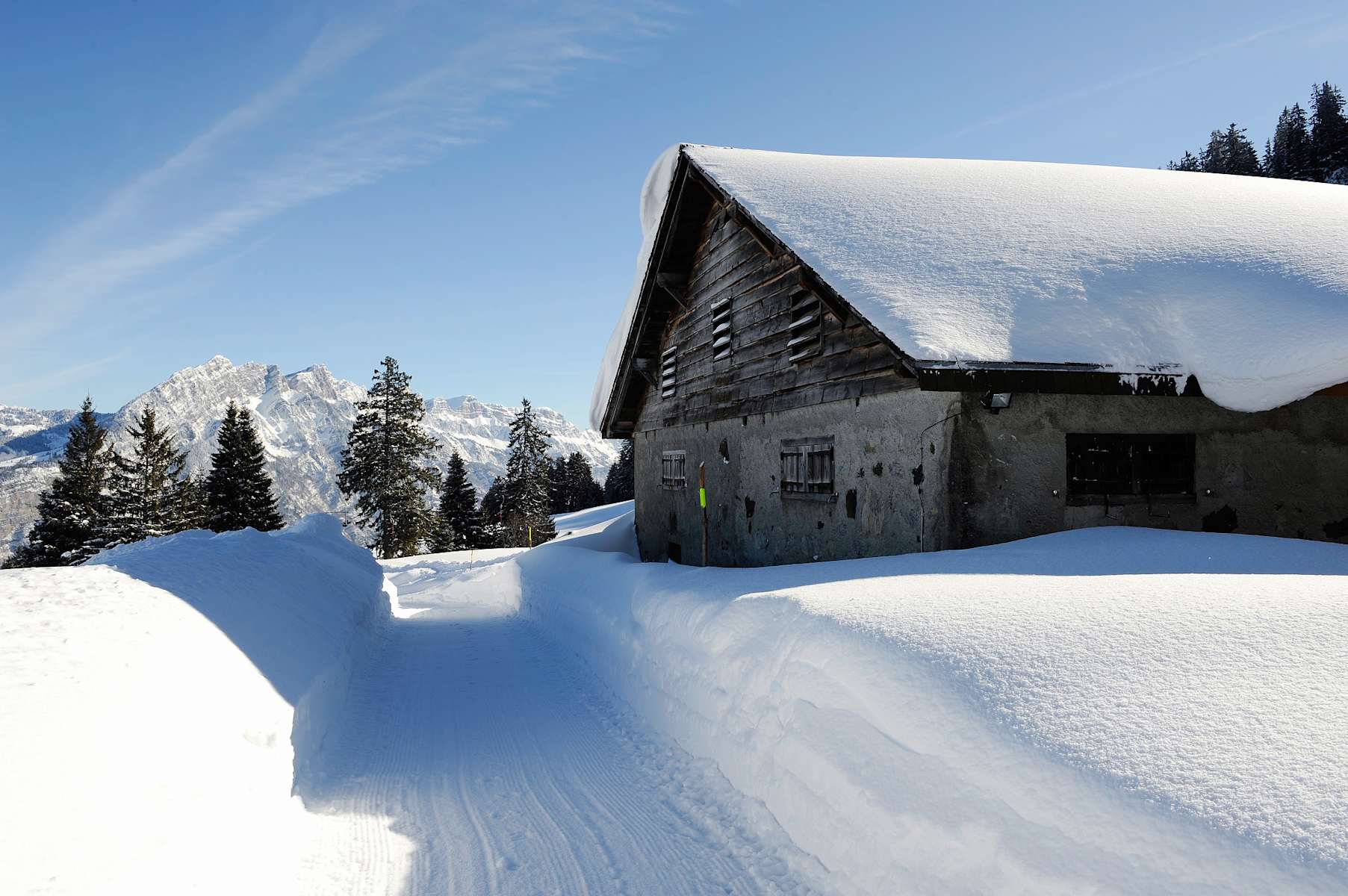 In Richtung Talalp und geht es abwechselnd durch Wald und offenes Gelände bergab. Der Weg ist nicht allzu steil und eignet sich bestens auch für Kinder (ausser es sei denn, dass er vereist wäre). Unten an der Talstation Filzbach kann man den Schlitten zurückgeben und wandert auf dem Zufahrtssträsschen zur Kerenzerberg-Strasse hinunter.