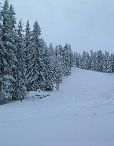 Vom Parkplatz wandert man immer der Rodelbahn entlang hinauf zu Hütte. Bei entsprechenden Verhältnissen könnte man auch den steileren Sommerweg durch den Wald benützen, was aber mit der Rodel im Schlepptau nicht zu empfehlen ist.