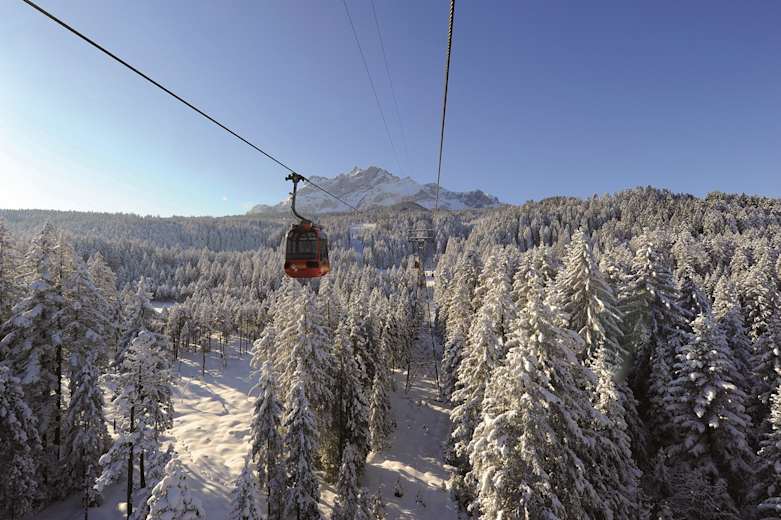 Panorama mit Gondelbahn im Winter Foto: Pilatus-Bahnen AG