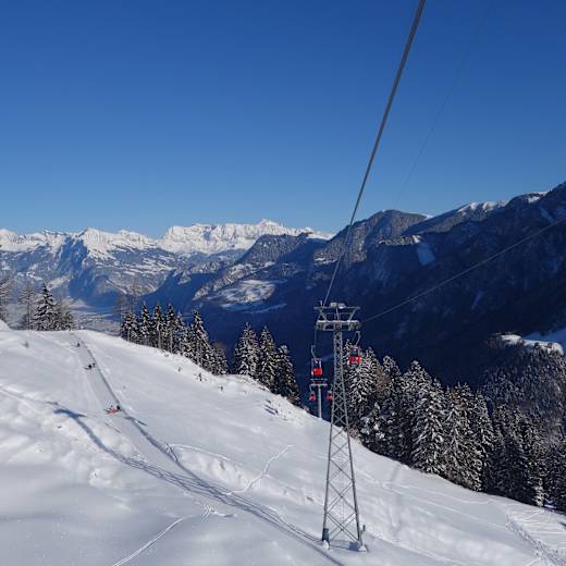 Auf gut 4 km bietet die mittelschwere Rodelstrecke am Brambüesch hoch über der Bündner Kantonshauptstadt Chur actionreiche Abfahrten, rasante Kurven, sagenhafte Tiefblicke und jede Menge Spass. Aufgrund des gleichmässigen Gefälles ist die Route in den Plessur Alpen besonders für Familien mit Kindern geeignet. Und das Beste: Dank Liftunterstützung ist der Rodelspass nur 15 Minuten vom Stadtzentrum entfernt.
