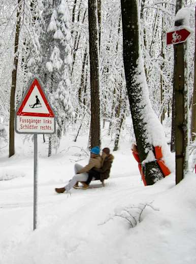 Zu einem besondern Abenteuer wird das Schlitteln auf den Uetliberg bei Nacht: Mit Stirnlampen, Taschenlampen oder Handys leuchten sich die wagemutigen Rodler den Weg hinab nach Triemli.