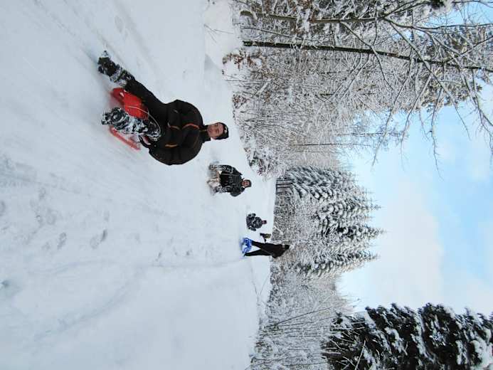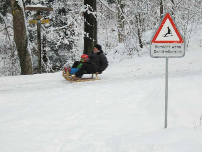 Statt mit der Bahn zu fahren, kann man auch über den Schlittelweg aufsteigen. Ein sanfte Alternative für Familien mit kleinen Kindern ist der sanfte Schlittelhang bei der Station Ringlikon.