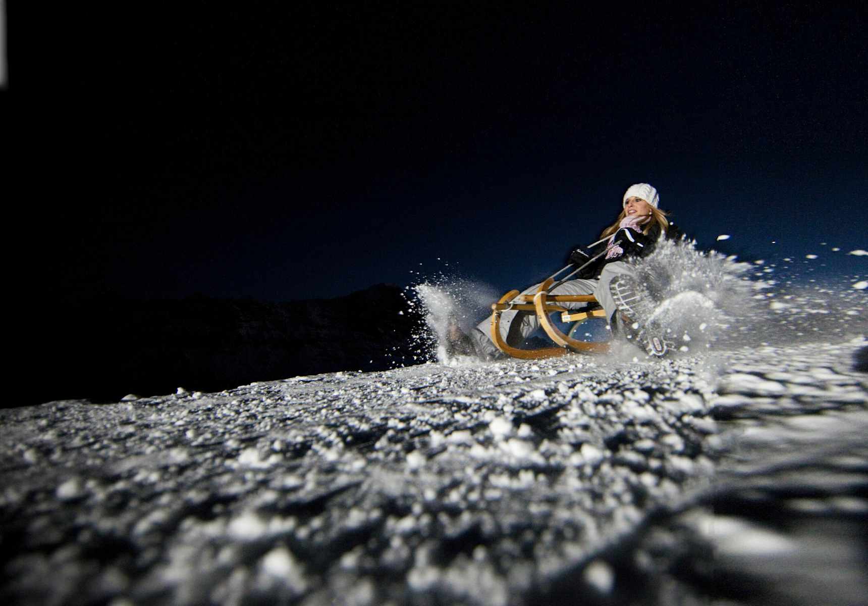 Bei einem nächtlichen Schlittelabenteuer erlebt man die nächtliche Winterlandschaft um die Bussalp von ihrer schönsten Seite. Bei Vollmond und klarem Himmel braucht es keine künstliche Beleuchtung. Ansonsten Stirnlampe mitnehmen. Die Strecke ist nicht beleuchtet.