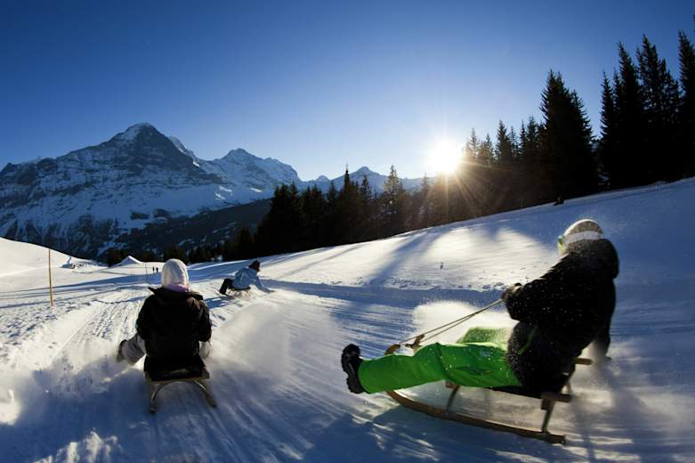 Die Bussalp (1.800 m) liegt inmitten der Bergwelt der Berner Alpen und ist ein absolutes Wander- und Schlittelparadies. Über gut 7 km und 750 Tiefenmeter schlängelt sich der City Run hinab ins Tal nach Grindelwald und bietet dabei jede Menge Fahrspass für Jung und Alt. - Ein absoluter Rodelklassiker im Berner Oberland mit fantastischer Aussicht auf Eiger, Mönch und Jungfrau.
