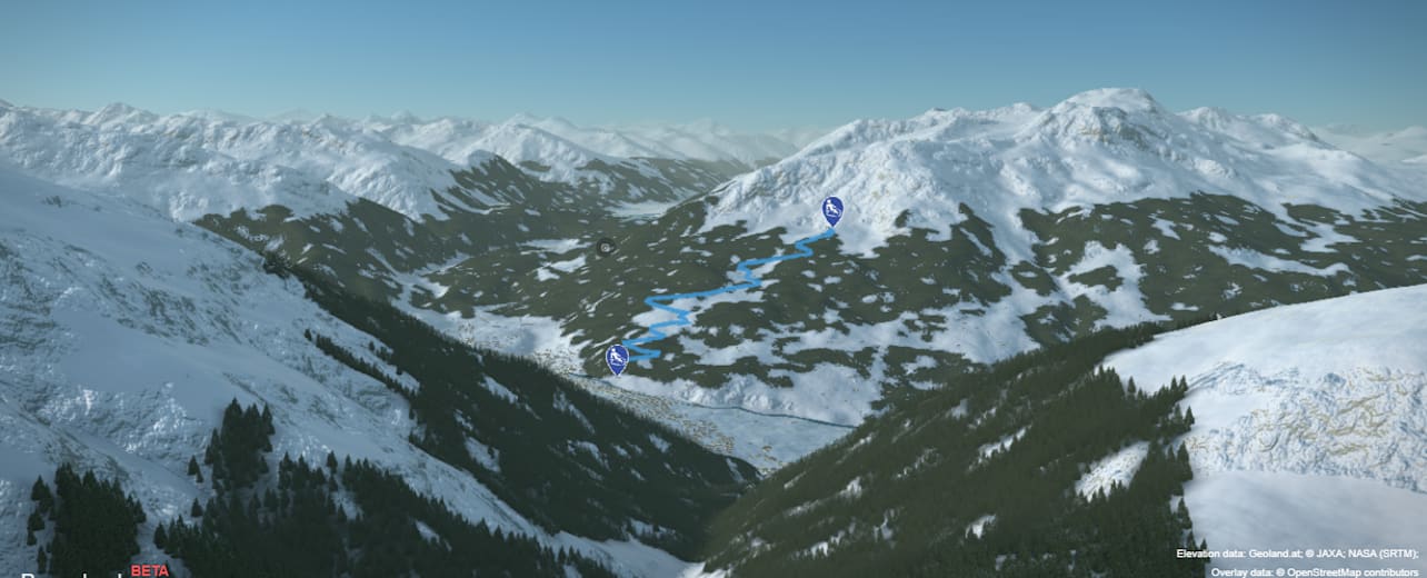 Hat man das Panorama ausreichend begutachtet, heisst es volle Konzentration am Schlitten und los geht die Fahrt. Die Piste beginnt direkt neben der Bahn und führt durch den Usser Zugwald zunächst nach Hinderem Zug. Leichte Bodenwellen und einige Steilwandkurven fordern auf der Abfahrt volle Konzentration. Über den Tschessboden wird schliesslich Klosters erreicht.