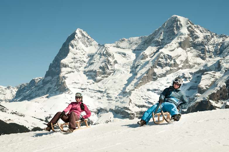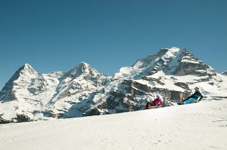 Das Schilthorngebiet im Kanton Bern ist wie zum Schlittelfahren gemacht. Über knapp 4 km schlängelt sich die rasante Strecke vom Schiltgrat (2.123 m) über Schiltalp und Gimmeln hinab nach Mürren. Unterwegs kann man nicht nur reichlich Sonne tanken, sondern auch die fantastische Aussicht auf die umliegenden Gipfel der Berner Alpen geniessen.