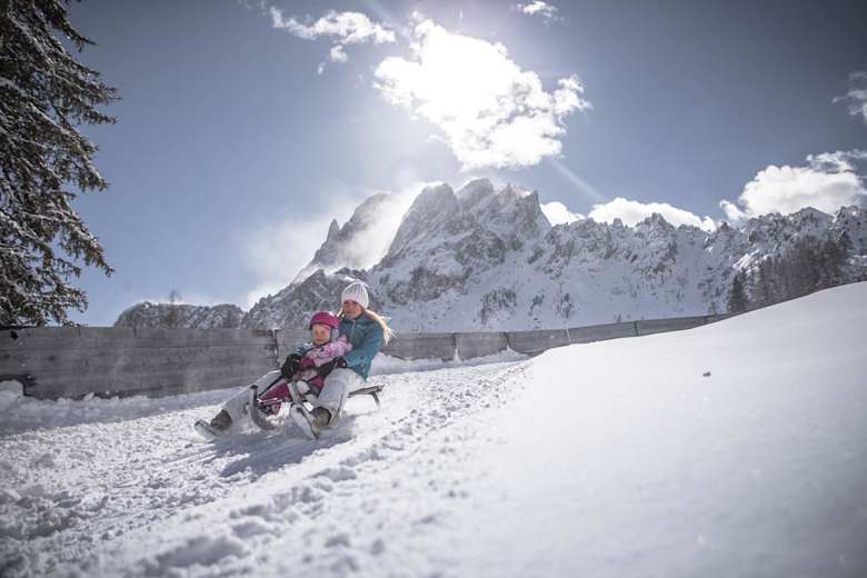 Die Rodelbahn Rotwand in Sexten ist fünf Kilometer lang und verspricht Rodelspaß für die ganze Familie. Dank der Kabinenbahn Rotwandwiesen erspart man sich zudem den langen und anstrengenden Zustieg.