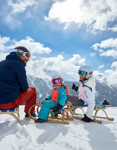 Schlitten können auf Risitis im Yetipark gemietet werden.