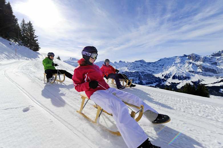 Wer ein rasantes Schlittelabenteuer sucht ist am Zigerboden im Engelbergertal richtig. Über 2,5 km windet sich die sonnenverwöhnte Strecke in der Zentralschweiz von der Brunnihütte nach Ristis. Auf die mutigen Rodler warten einige steilere Passage sowie ordentlich Tempo.