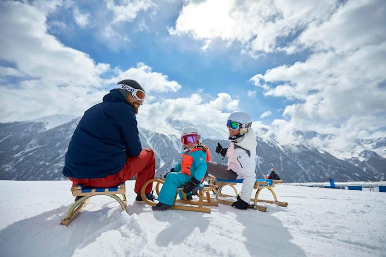 Diese tolle Rodelbahn im Tiroler Paznaun führt direkt von der Bergstation der Diasbahn in rund 6 Kilometer bis ins Tal. Ein Vergnügen für Jung und Alt.