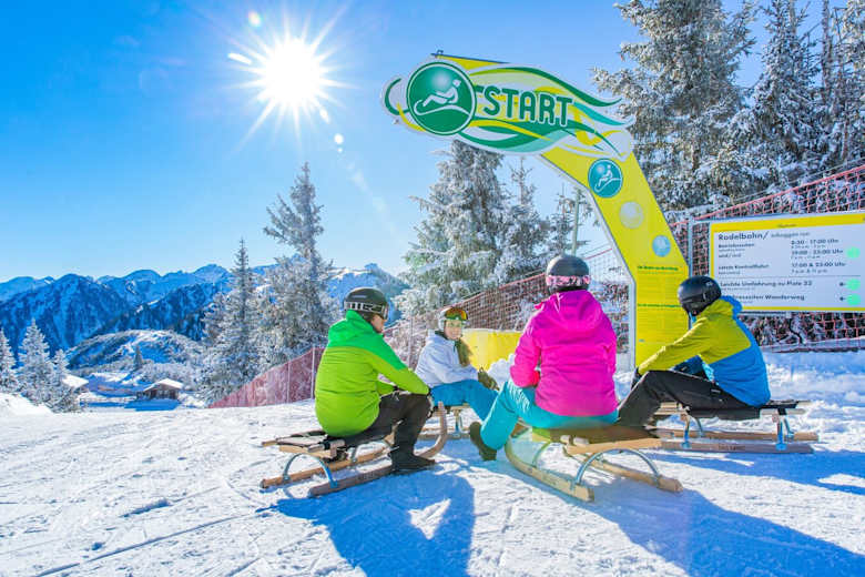 Nach der Einkehr bitte unbedingt wieder zurück auf die Rodelbahn und NICHT entlang der Skipisten rodeln. Diese sind sehr steil, und die Kontrolle über die Rodel somit sehr schwer, was eine große Gefahr für Skifahrer und andere Wintersportler darstellt!