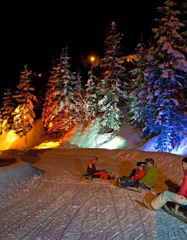 Auf der Hochwurzen im gleichnamigen Skigebiet in Schladming kann auch an ausgewählten Tagen nachts gerodelt werden. Die Seilbahn fährt an diesen Tagen extra länger und bringt die Rodler zum Ausgangspunkt auf dem Hochwurzen Gipfel.