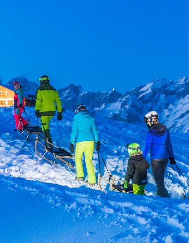 Die Naturrodelbahn am Rittisberg bei Ramsau am Dachstein ist vor allem abends ein Spaß für die ganze Familie. Mit der Rittisbergbahn geht es hinauf zum Ausgangspukt und im Anschluss über die 3,5 Kilometer lange Rodelbahn ins Tal.