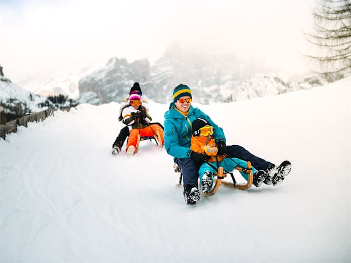 Diese technisch einfache Panorama-Rodeltour in La Val in Alta Badia ermöglicht es, den winterlichen Zauber neu zu erleben. Die Rit Wiesen, die im Sommer mit einer vielfältigen Pflanzenwelt beeindrucken, sind im Winter für ihr unberührtes, schneebedecktes Almgelände bekannt.