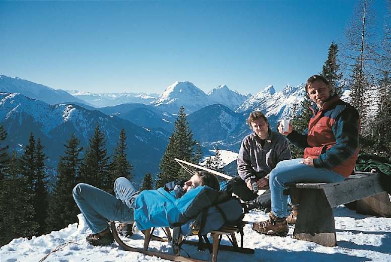 Eine der längsten Rother-Rodeltouren in Tirol führt auf die urige Pleisenhütte im Karwendel, die traumhaft auf einem sonnigen Aussichtsbalkon hoch über dem Hinterautal in Bayern liegt. Ein gewisses Maß an alpiner Erfahrung ist besonders bei schlechtem Wetter erforderlich, da die Pleisenhütte in hochalpinem Gelände liegt. Beim Wiesenhof, den man nach ca. 1,5 km vom Parkplatz aus erreicht, gibt es einen Rodelverleih.