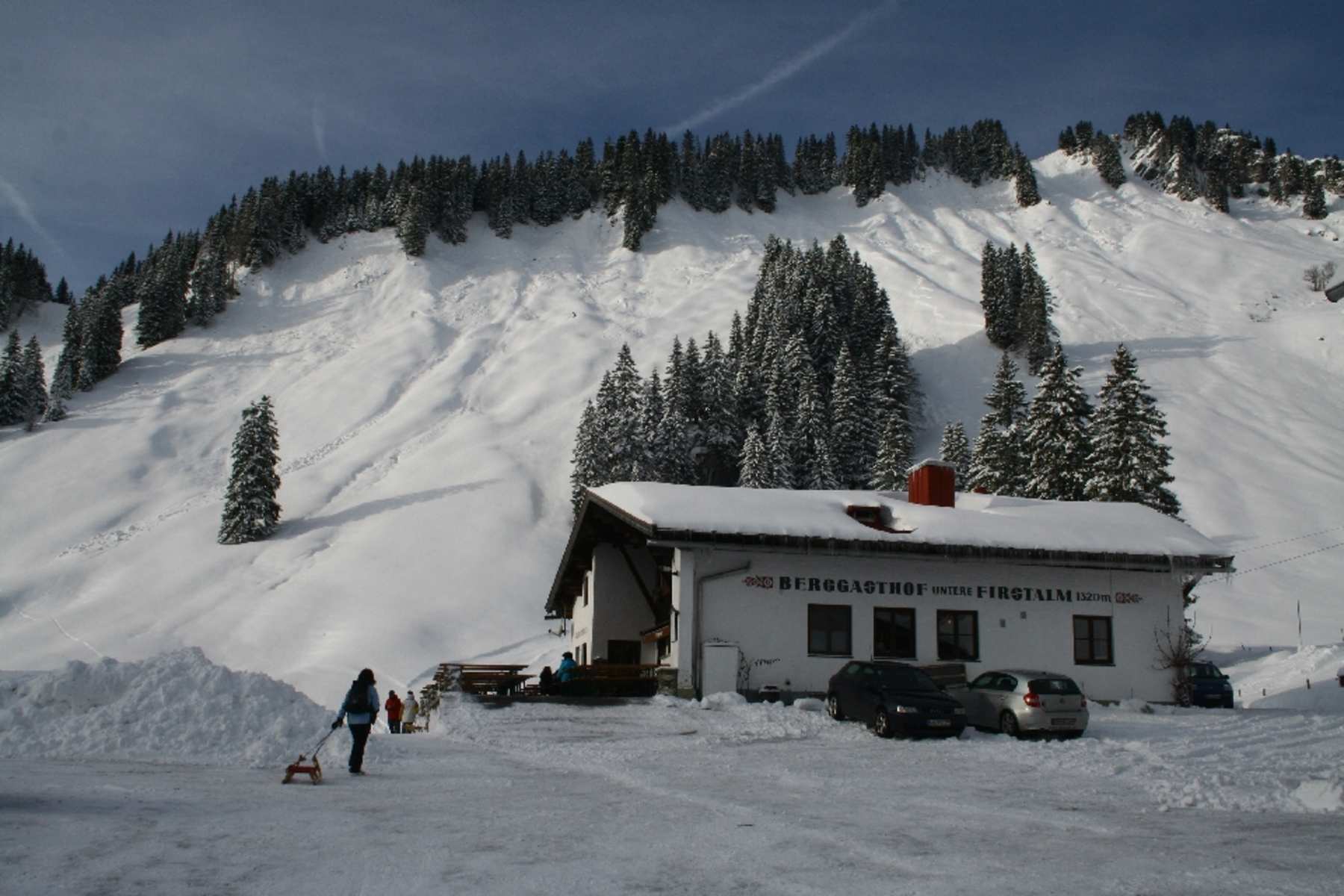 Als Einkehrmöglichkeit bietet sich die Untere Firstalm, 1.318 m, an. Ein Bayrischer Brotzeitteller oder der hausgemachte Apfelstrudel stärken für die Fahrt ins Tal.