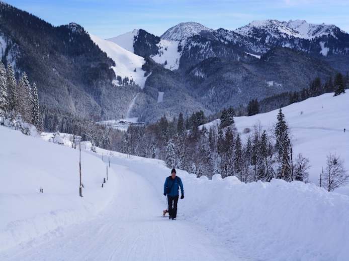 Von der Unteren Firstalm, in der Region Tegernsee-Schliersee, führt diese leichte Rodelbahn über einen geräumten Fahrweg hinab Richtung Spitzingsee in den Bayerischen Voralpen. Die Strecke ist relativ flach, weist viele lange Geraden und wenige scharfe Kurven auf. Sie ist daher ideal für Kinder geeignet. Das Raufschleppen der Rodel fällt weg - bei der Firstalm gibt es einen Rodelverleih.