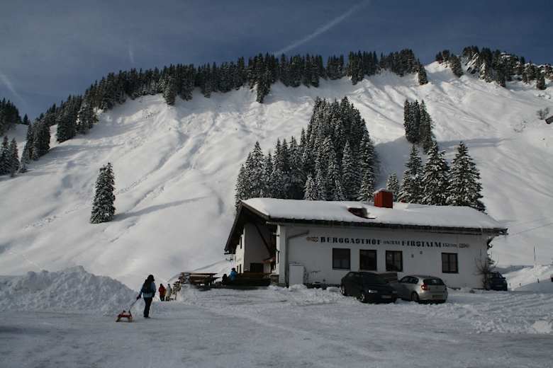 Vom Parkplatz folgt man der guten Beschilderung über den Fahrweg (= Rodelbahn) bis zur Unteren Firstalm. Am Weg befinden sich keine nennenswerten Abzweigungen, welche nicht durch die Beschilderung deutlich gemacht werden. Anstieg rund 1 h Gehzeit.