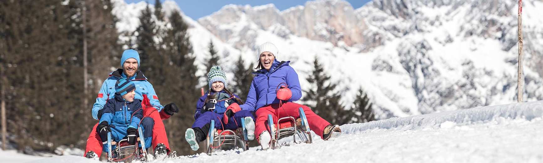 Zu einem Winterurlaub am Hochkönig gehört natürliche auch eine lustige Rodelpartie. Man kann mit dem Skibus bis zur Haltestelle Kopphütte fahren - von hier sind es nur ca. 20 Minuten und gut 30 Höhenmeter bis zum Start der Rodelstrecke. Nach dem schönen Spaziergang durch die Winterlandschaft kann man nach einer Einkehr in der Kopphütte gestärkt und aufgewärmt mit dem Schlitten zurück in den Ort brausen. Die Schlitten können (gegen eine kleine Gebühr) direkt beim Alpengasthof Kopphütte ausgeliehen werden. Die Rodelstrecke beträgt 3,7 km und 447 m Höhenunterschied liegen zwischen der Kopphütte und dem Tal. Die Strecke führt teilweise durch einen Wald über den Scheideggberg zum Rohrmoosriedel direkt in den Ort Mühlbach. Dort kann man die Rodeln einfach wieder abstellen.