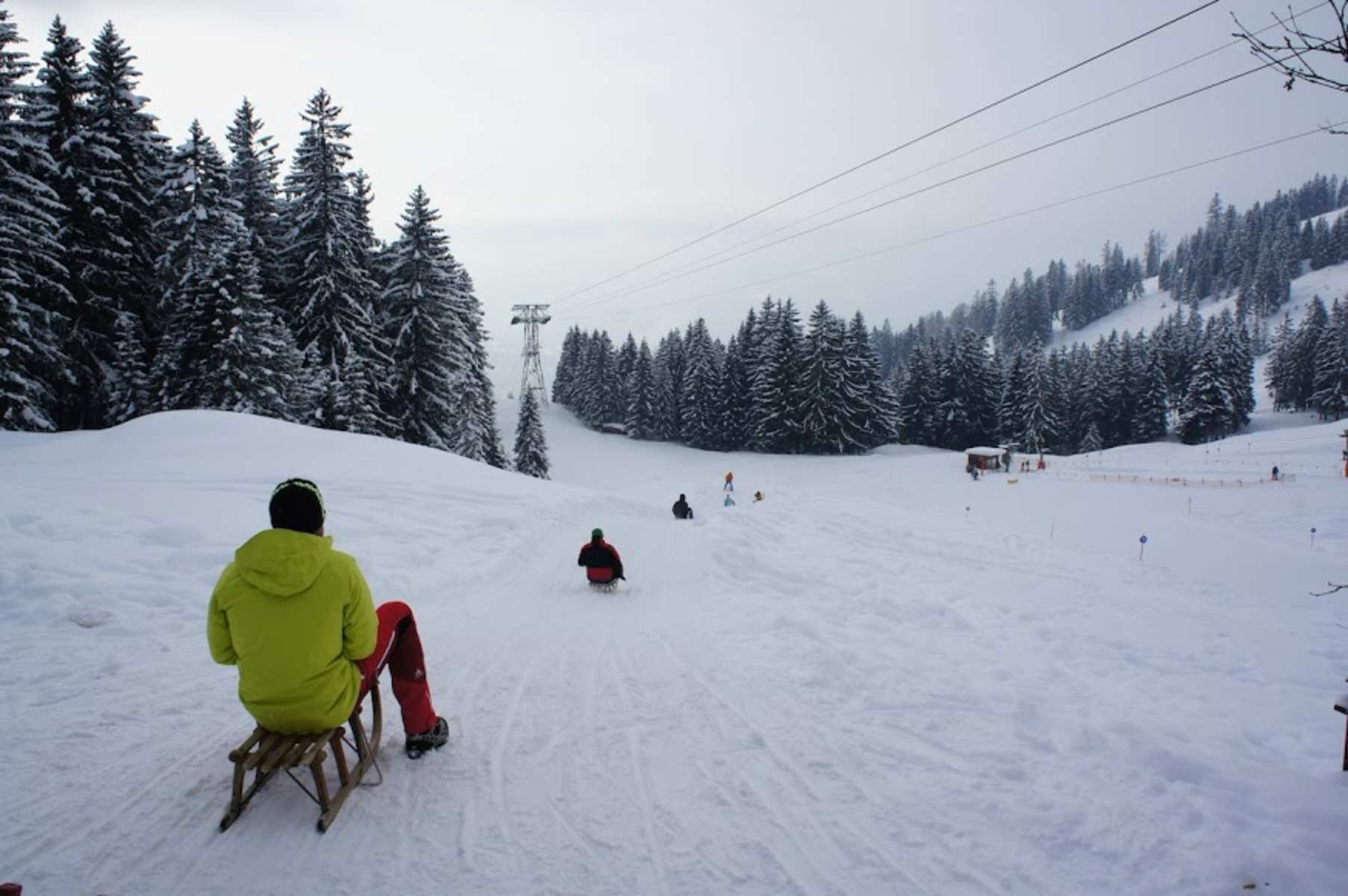 Auf dem Forstweg rodelt man dann hinunter.