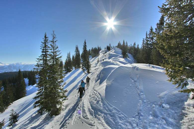 Am Ende des Parkplatzes Kaiserau links von der Forststraße dem Winterwanderweg in Richtung Oberst-Klinke-Hütte folgen. Bei wenig Schnee oder für Einsteiger bietet auch die Forststraße eine einfachere und sichere Aufstiegsmöglichkeit. Nach rund 1 h erreicht man die Klinkehütte und hat bereits die erste Möglichkeit für einen Einkehrschwung.