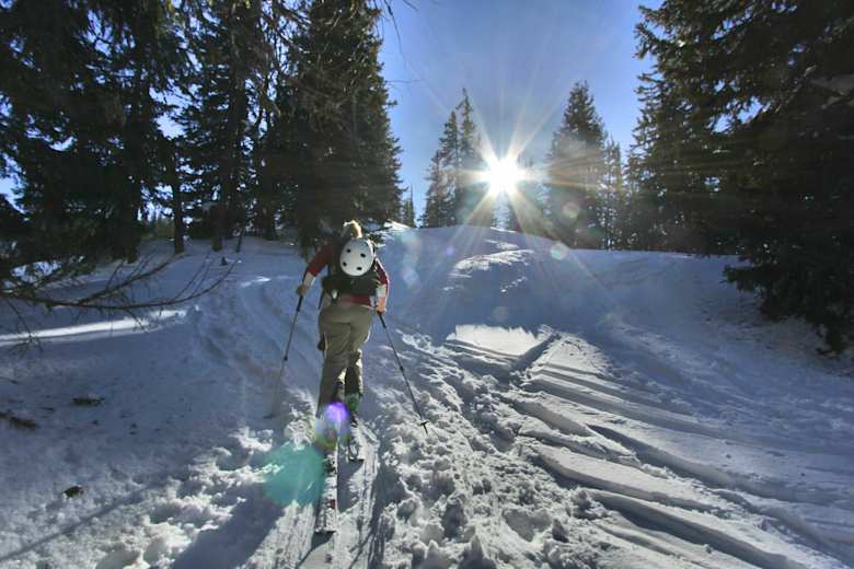 Nach einer prickelenden Gesäuse-Perle in der Klinkehütte nochmals auffellen und zur aufgelassenen Lift-Bergstation am Fuße des Admonter Kaiblings aufsteigen. Abfahrt wird meist mit Deluxe-Pulverschnee belohnt.
