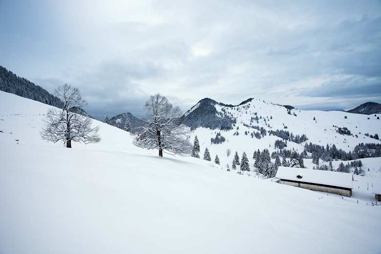 Skitouren-Firnvergnügen über dem Sudelfeld in Bayern: Mit seiner geradezu idealen waldfreien Südabfahrt, zügig und stets der Sonne zugewandt, nimmt das Wildalpjoch (1.720 m) in der Region Chiemsee-Alpenland eine Sonderstellung unter den sonst weniger skifreundlich gestalteten Bayerischen Voralpen ein.