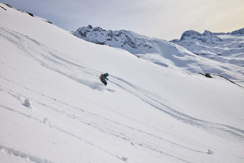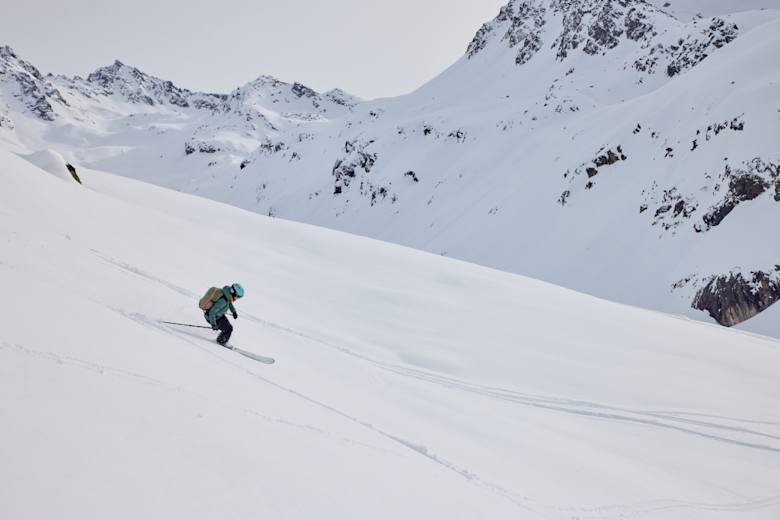 Vorsicht ist bei den steilen Hängen am Eingang des Bieltales geboten. Die breiten Westhänge bieten ein traumhaftes Abfahrtserlebnis.