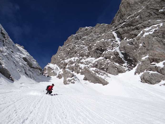 Einziges Manko: Ein schneereicher Winter ist von Nöten, um die Felsbänder und Rinnensysteme zu füllen.