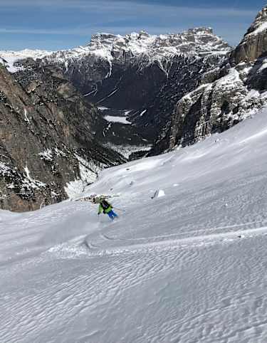 Das Unternehmen kann nur in sehr schneereichen Wintern durchgeführt werden, da eine Schlüsselpassage in der Steilrinne geschlossen sein muss. Der Gipfel kann nur ohne Ski erklommen werden (keine Abfahrtsmöglichkeit). Wichtig auf dieser Tour ist eine komplette alpinistische Ausrüstung (Steigeisen, Pickel, Seil, Gurt, Schlingenmaterial).