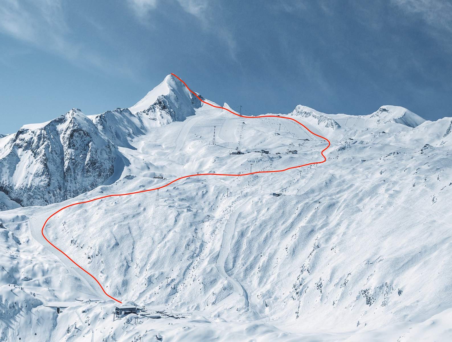 Das Kitzsteinhorn mit eingezeichneter Route Foto: Gletscherbahnen Kaprun