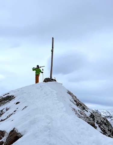 Die durchwegs steile Tour im österreichisch-italienieschen Grenzgebiet auf 2.290 m und die anschließende Nordabfahrt von der Scharte führen durch eine breite Rinne.
