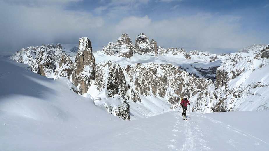 Diese klassische und abwechslungsreiche Skitour zur Forcella del Nevaio Scharte in Italien gehört zu den schönsten der Gegend von Südtirol und Cortina d'Ampezzo.