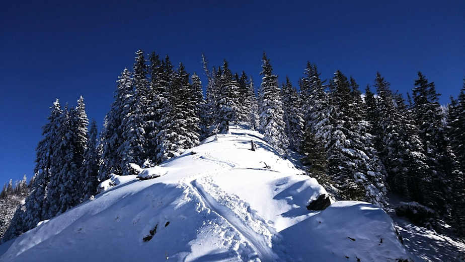 Die letzten 100 Hm führen über den steilen NO-Rücken und erfordern eine gute Wahl der Spuranlage. Alsbald gelangt man zum meist windumblasenen Gipfelkreuz des Kochofens.