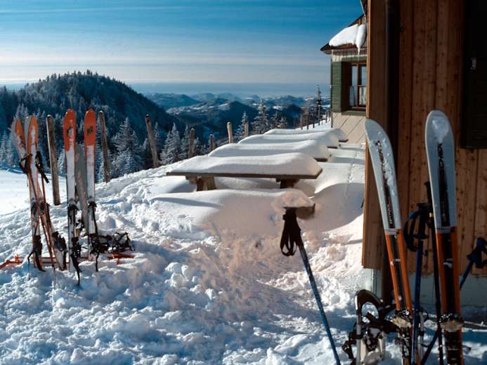 Die Julius-Steiner-Hütte liegt direkt am Gipfel des Eisensteins und wird deshalb auch "Eisensteinhütte" genannt. Im Winter hat sie an den Wochenende und Feiertagen geöffnet und eignet sich als beliebtes Ziel nach relativ einfachen Skitouren. Groß und Klein werden mit regionalen Köstlichkeiten verwöhnt.