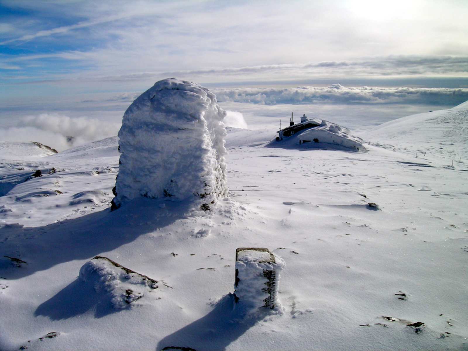 Dann auf 1.700 m die Ausläufer des Grabens. Nun leicht links halten (wichtig bei Nebel, Gelände ab hier unübersichtlich!) in eine Mulde, von links Einmündung des Schneegrabens. Dann wieder eher rechts haltend in eine Nachbarmulde. Auf 1.560 m links etwas verdeckt die Heinrich-Krempel-Hütte.