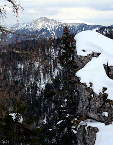 Die beliebte Hochwinter-Tour im Randgebirge östlich der Mur führt über eine ehemalige Skipiste hinauf und bietet eine sehr schöne Gipfelschau als Belohnung nach dem Aufstieg.