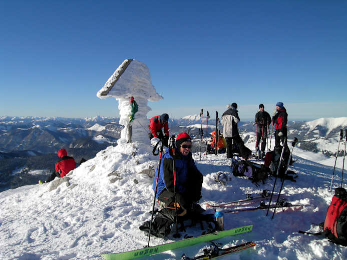 Eine beliebte Hochwintertour mit schönem Gipfelpanorama, genussvollen Tiefschneehängen und einem finalen Anstieg entlang einer Forststraße in den Mürzsteger Alpen.