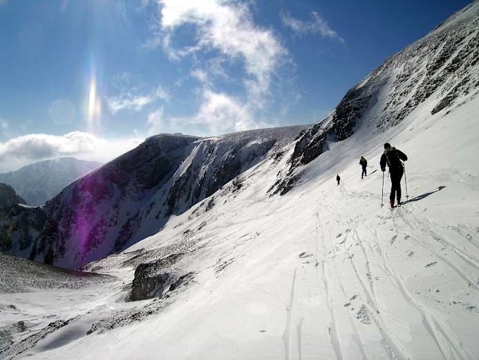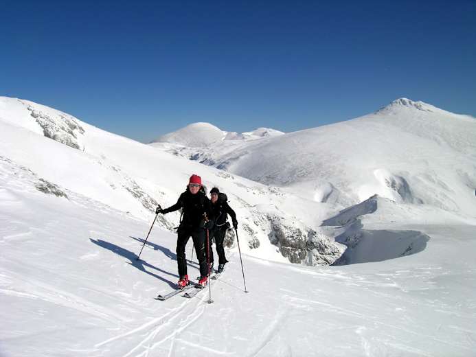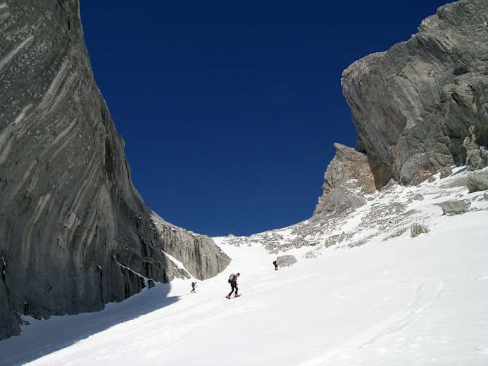 Landschaftlich ist diese Skitour ein Traum, der jedem Vergleich mit den Dolomiten standhält und skifahrerisch einen herrlichen Steilhang nach dem anderen serviert.