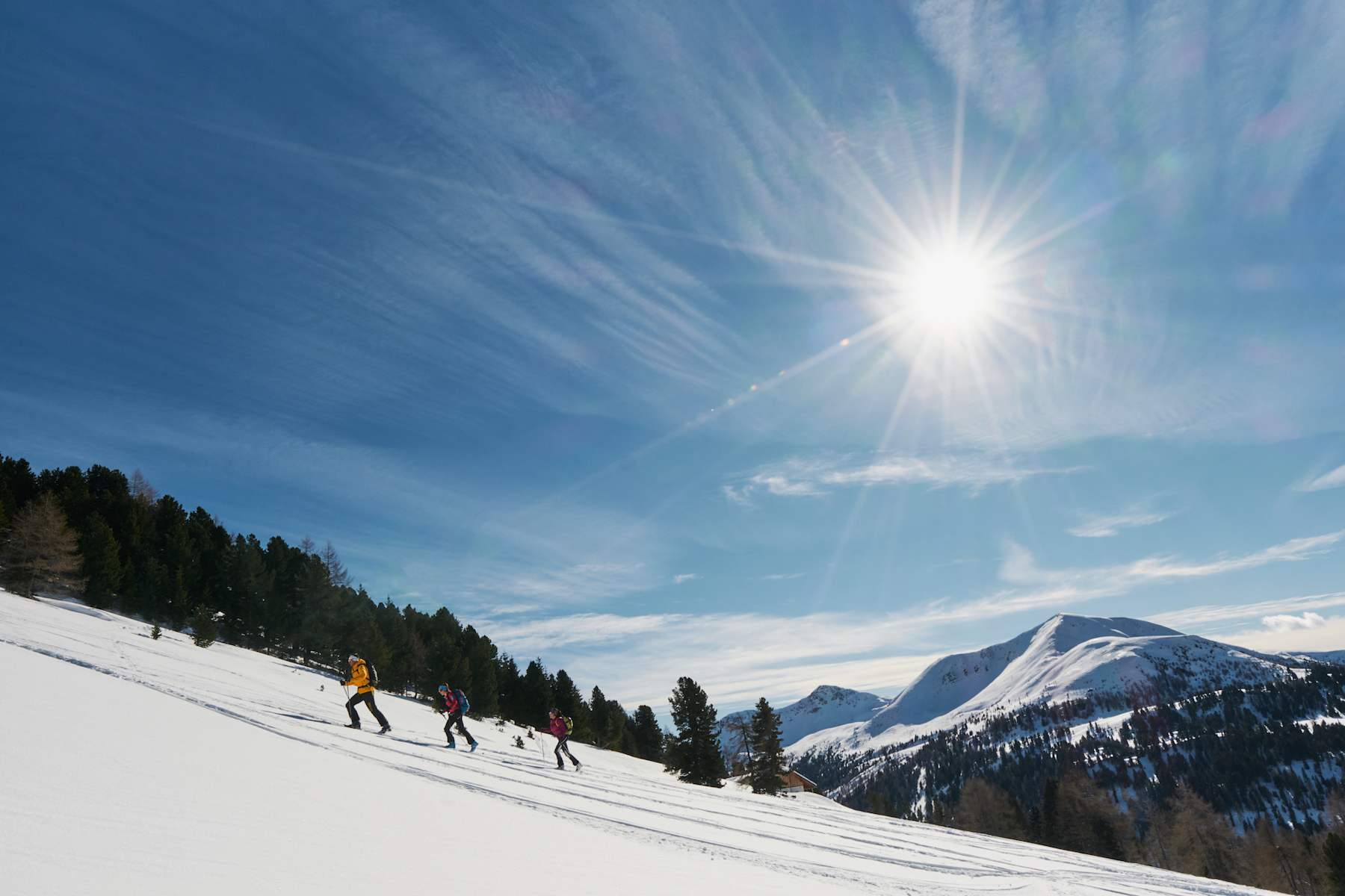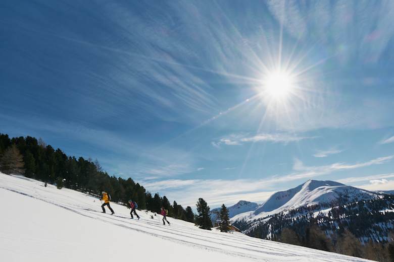 Leichte Skitour im Süden des Salzburger Landes, an der Grenze zu Kärnten, die auch für Anfänger bestens geeignet ist. Von der Josef-Mehrl-Hütte (1.730 m) in den Lungauer Nockbergen geht es entlang einer ehemaligen Liftspur und über einem Kamm auf die Matehanshöhe (2.071 m).