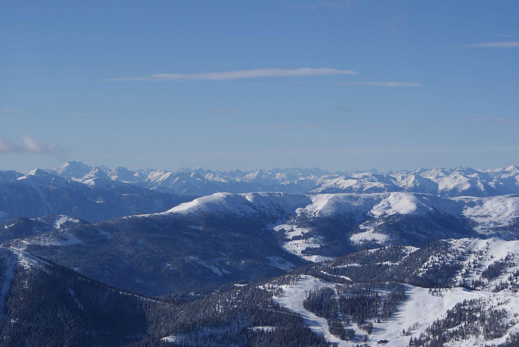 Skitour auf den Falkert (2.308 m): Von St. Oswald bei Bad Kleinkirchheim geht es via Falkertschutzhaus und Lärchenhütte zu den Hundfeldshütten und danach weiter auf den Falkertspitz. Die beliebte Panoramascheibe dort gibt detaillierte Auskunft über die von diesem Gipfel zu sehenden Berge. Lohnende Skitour in den Kärntner Nockbergen.